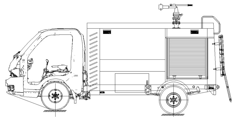 整車由消防員乘員室和車身兩大部分組成,車身布置采用整體鈑金式結構,外露水罐,后部為水泵房,罐體為平行長方體廂式容罐。 |